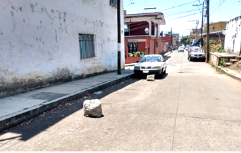 Una queja enviada a este Semanario por vecinos de la calle Justo Sierra esquina con Enríquez, dónde cómo se puede ver en la foto se colocan piedras para el apartado de lugar o evitar que se estacionen. Cabe destacar que esta práctica está prohibida por el Reglamento de Tránsito y Vialidad (Articulo 90).