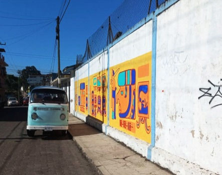 No tardamos ver bardas saturadas de propaganda político-electoral, pues en breve inician las campañas. Por eso es grato ver pintada una parte de la barda del campo deportivo, con motivos diferentes, llamativos, ajenos a la política. No sabemos el significado o de qué se trata, pero los colores vivos, alegran la calle.